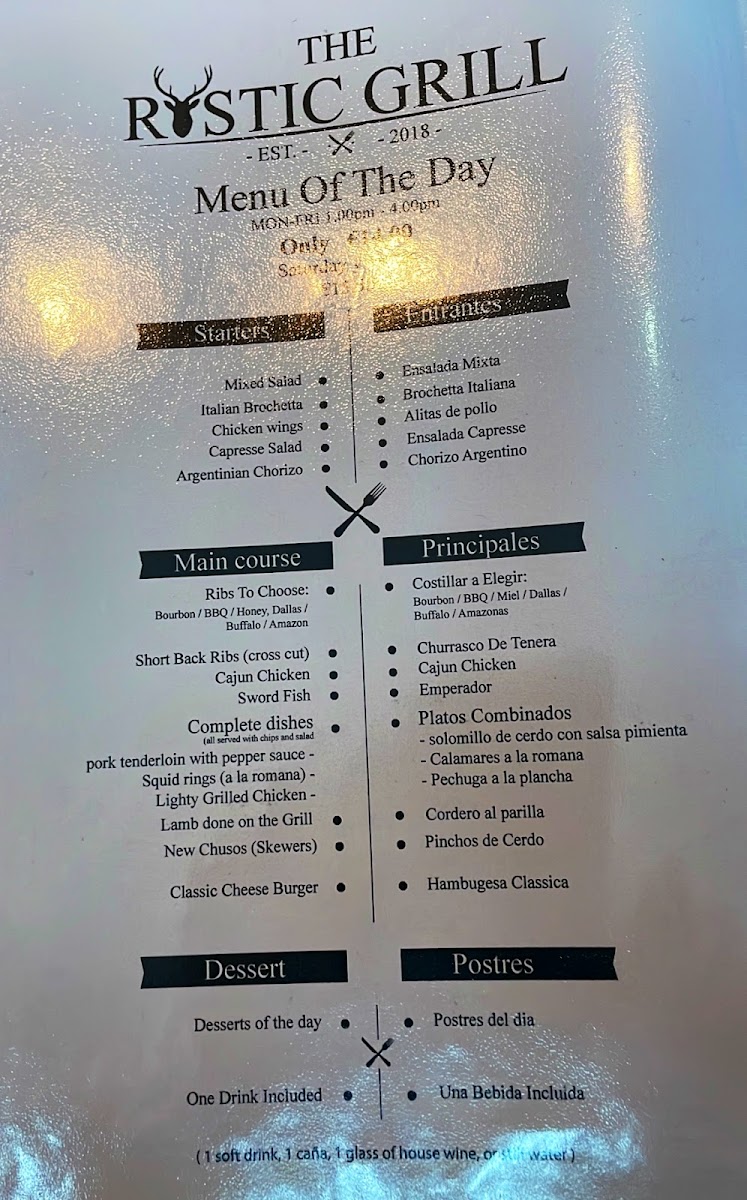 Welcome to The Rustic Grill, a culinary gem nestled in Roldán, Murcia, Spain. Known for its hearty portions and vibrant flavors, this restaurant invites you to indulge in a delightful menu that keeps patrons coming back. From the succulent full rack of ribs to the perfectly cooked lamb steak, every dish is crafted with care, ensuring a memorable dining experience.